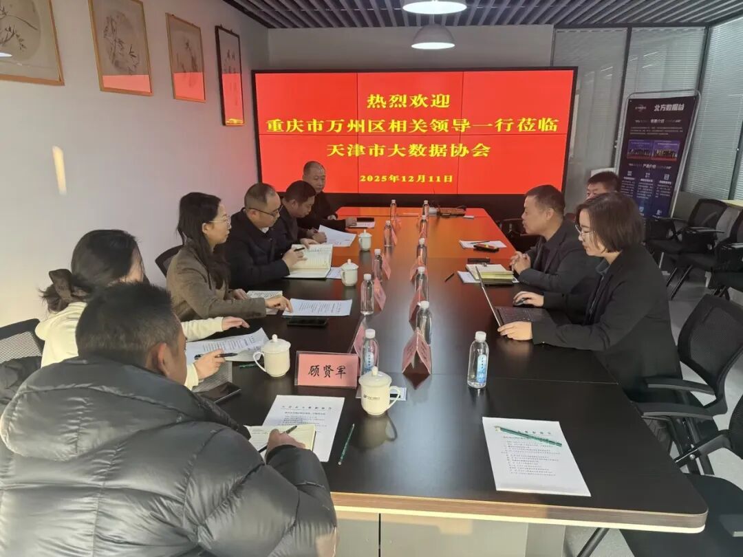 2025年12月11日,重庆市万州区考察团一行莅临天津市大数据协会,围绕数据要素市场化配置推进、产业创新升级路径探索等核心议题,展开深度座谈与务实交流。此次万州区考察团由区大数据应用发展管理局、区委全面深化改革委员会办公室、区招商投资促进局相关领导组成,天津市大数据协会会长赵明、秘书长袁小梅携协会秘书处相关负责人热情接待,双方就政企协同赋能数字经济发展、跨区域产业资源联动等方向交换了宝贵意见。